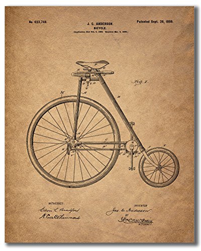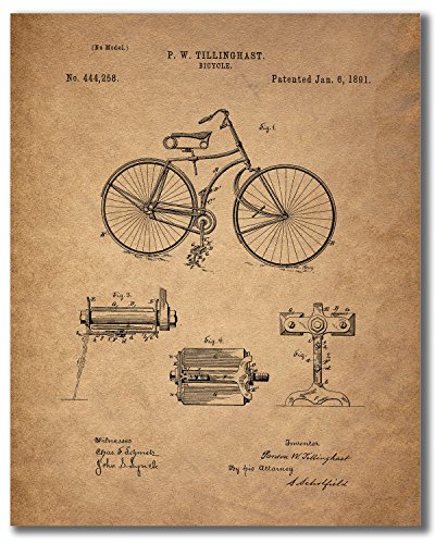Bicycle Patent Prints - Set of Six Vintage Bike Decor Wall Art Photos