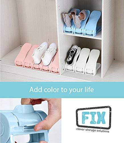 FIX Shoe Slots - Adjustable Shoe Organizer Space Saver Storage Rack Holder Double shoe rack , No Assembly Required , 6 piece set (Sky Blue)