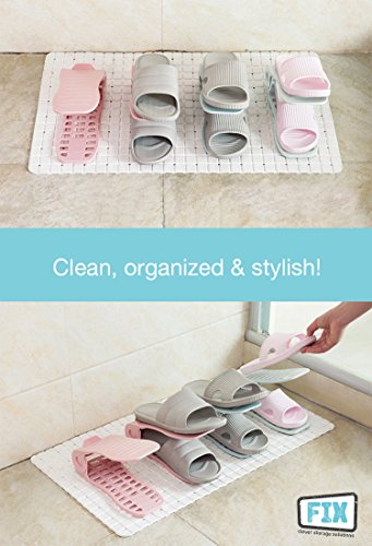 - ✅ DESIGN - Lightweight & durable material 💪 , Made of high quality non-slip ABS plastic with perfect grip for the soles of your shoes. Snap joint on the bottom, ensures shoes do not fall off easily and stay nice and organized. With a smart 4-Level Height Adjustment feature🔝, these slots can hold ANY size & type of shoe 👠 .