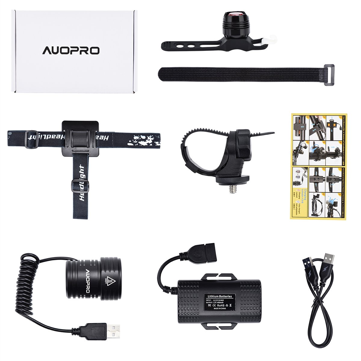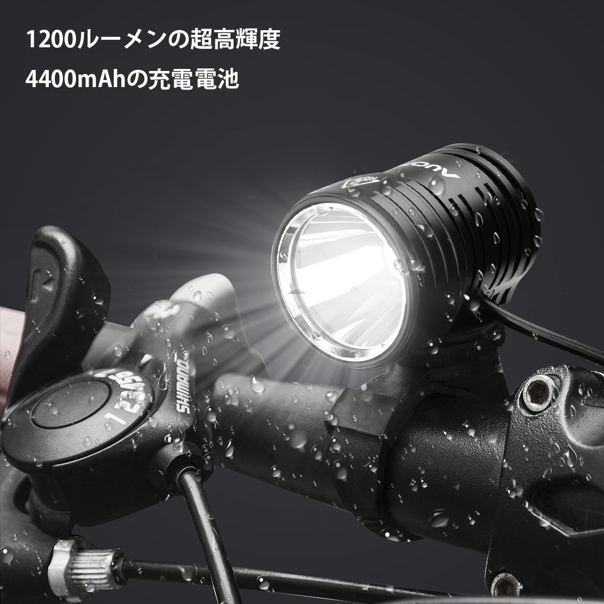 AUOPRO LED Bicycle Light IPX-6 Waterproof 1200 Lumens Ultra High Brightness CREE XM-L2 USB Charging 4400 mAh Battery Outdoor Only