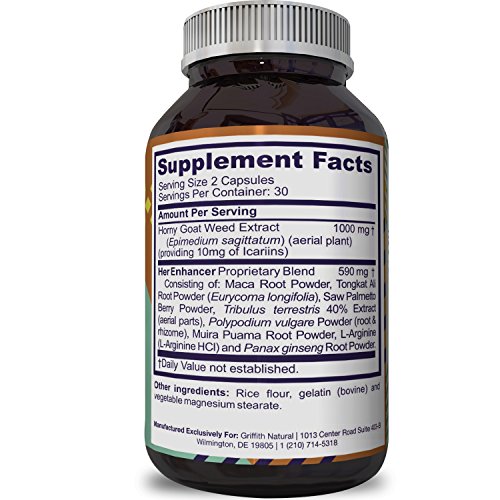 -. Brand : Griffith Natural -. EAN : 0806808279491 -. Feature : Naturally increase the size of your bust while improving the shape and curve of your breasts by taking these extra strength female supplements - with Ginseng + Tongkat Ali + Horny Goat Weed for maximum booty enhancement potency / Our pure and potent butt enhancement pills help you get larger boobs and a rounder, fuller butt naturally - a great alternative to cosmetic procedures. More easily absorbed than some butt enhancement creams and lotions. / No need to worry about unwanted weight gain since these breast enhancement capsules help improve chest size while promoting a sexy hourglass figure - the ingredients may even help support weight loss / Our female enhancement capsules are rich in Tongkat Ali that promotes healthy weight loss when used in conjunction with weight training and a good diet - may help burn belly fat as well. Maca Root is known for its natural breast enlargement benefits / Horny Goat Weed can help users to boost their sexual performance and enhance libido - it is the perfect sex libido booster for women - this supplement is made in the USA and has a 100% Money Back Guarantee -. IsAdultProduct : 0 -. Label : Griffith Natural -. Manufacturer : Griffith Natural -. MPN : LE -. PackageQuantity : 1 -. PartNumber : LE -. ProductGroup : Health and Beauty -. ProductTypeName : DIETARY_SUPPLEMENTS -. Publisher : Griffith Natural -. Studio : Griffith Natural -. Title : Breast Enhancer Pills - Boost Bust Size & Improve Shape - Natural Breast Enlargement + Booty Pills - Avoid Weight Gain Elsewhere - Butt Enhancement Supplement - Ginseng + L Arginine -. UPC : 806808279491