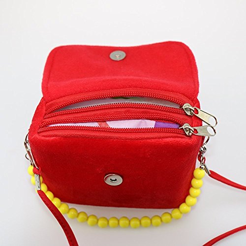 Strap Children Girls Kids Princess Sweet Flower Bead Zipper Package Messenger Cross Body Shoulder Handbag Tote The bag with a Beads belt and a Messenger strap (folded about 51cm length strap can not be adjusted, but you think strap too long, then you can make a bow). Open the bag in two grid, you can put the phone, put the paper towels, or to put some candy for your baby. Mother and children using available. It is a nice gift for your little princess.