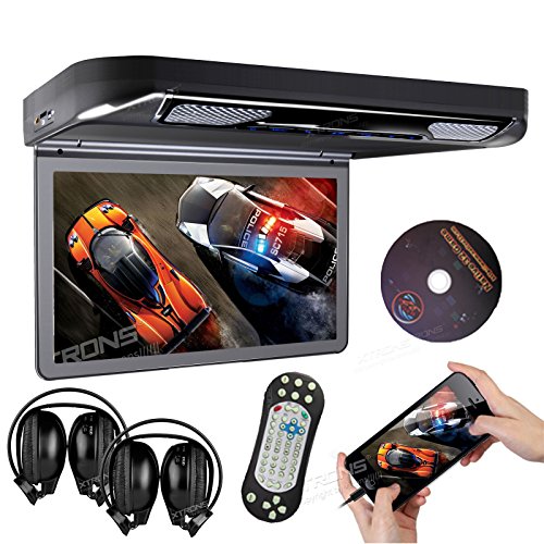 -. Title : XTRONS® Black 13.3" HD 1080P Video Car MPV Roof Flip Down Slim Overhead DVD Player Wide Screen Ultra-thin with HDMI Input 2PCS IR Headphones Included