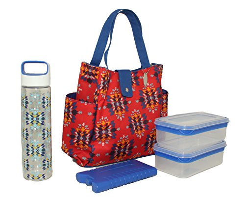 - DETAILS -Comes with 2 food storage reusable containers are airtight vacuum seal which keeps food, lunch, sandwhiches, and salads fresh longer and is also Leakproof. 1 Ice Pack (FOOD GRADE SAFE) to keep your food and drinks inside nice and cold. 1 Plastic Water (BPA FREE) Sports Bottle is specially designed with you, the active user in mind. Open the bottle with just twist and drink up! LEAK/SPILL-PROOF. Don't get caught with any other inferior lunch tote bag.