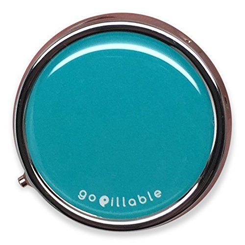 PUSH BUTTON OPEN - lightweight, easy access to medication, high gloss teal colored top with silver lid, sturdy construction, 3 internal dividers keeps your pills organized. SEE DESCRIPTION FOR PILL CAPACITY EXAMPLES.