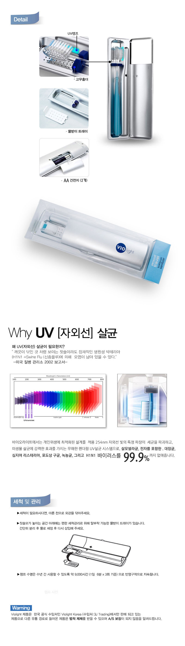 상품명 : VIOlight 개인용/휴대용 UV 칫솔살균기 자외선