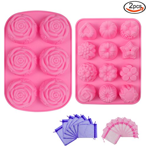 Outuxed 2 Pcs Silicone Soap Cake Ice Cube Mold with 18 Gauze Bags