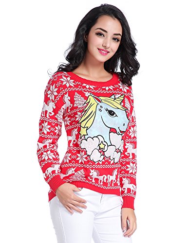 -. Title : Ugly Christmas Sweater, V28 Women Girl Junior Unicorn Clothes Jumper Red Sweater