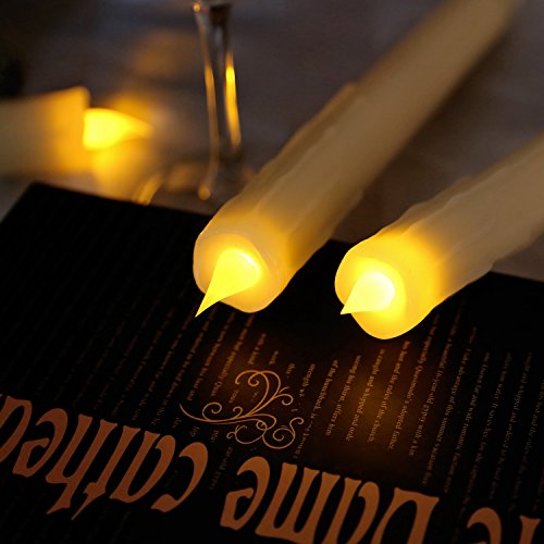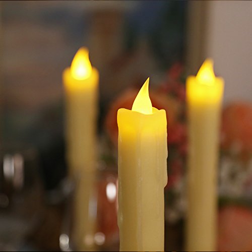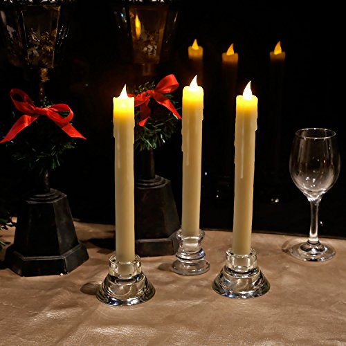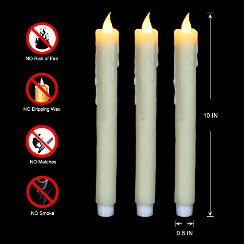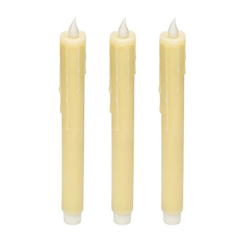Ivory 10" Dripping Wax Flameless Led Taper Candle with Timer, Battery Operated Candle,Set of 3
