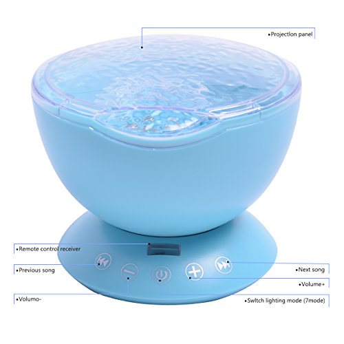 -. Title : Remote Control Ocean Wave Night Light Projector with 12 LEDs & 7 Color Changing Modes and Mini Music Player/ Speaker/Mood Light for Baby Kids Adults Living Room and Bedroom(White)