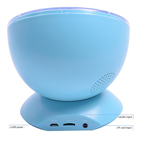 -. Feature : ? 1 YEAR WARRANTY, Whole Team service for you, If product have any problem we will help you solve it at the first time or design new one for you. / ? 12LED 7Colors 45 angle : 12 super bright LED beads and 7 lighting modes, you can choose which mode show depending on your mood or the surrounding at ease. / ? Auto Off Timer:3 Auto off timer options- built-in 1H, 2H, 4H auto off timer, the lamp will automatically shut off after the preset time. And of course timer can be canceled to stay on all night long. / ? Built-in Mini Music Player: Support TF card, Smart Phone, you can change the music you want, at this time it just like speaker. And there are four built-in lullaby music: forest insect sounds, ocean wave sea gulls sounds, flowing water birds sounds and merry nature sounds. / ? It¡¯s a color changing wave LED night light with mini speaker powered by matched USB cable (adapter is not included), and control by both touch sensor key and controller (2*AAA battery not included). It¡¯s perfect for creating a watery ocean atmosphere, which can be used in bathrooms, living rooms, baby rooms, parties or any other.