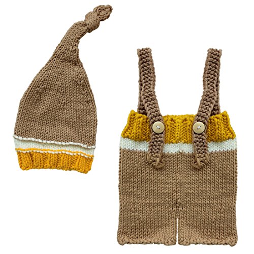 -. Title : TIAOBU Newborn Baby Crochet Knit Short Overall Photo Prop Hat Costume Outfits