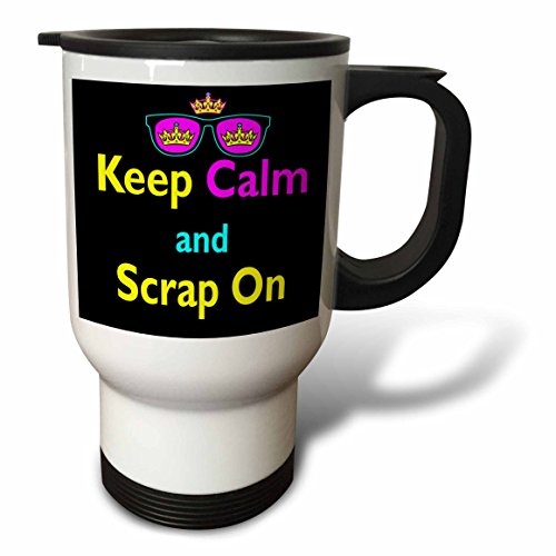 3dRose CMYK Keep Calm and Scrap on, Parody, Crown and Sunglasses, Stainless Steel Travel Mug, 14-Oz