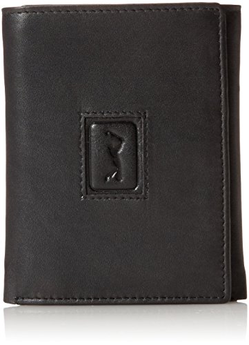 Men's PGA tour threefold leather wallet packaged in white PGA tour box. Holds id, currency, credit cards and business cards