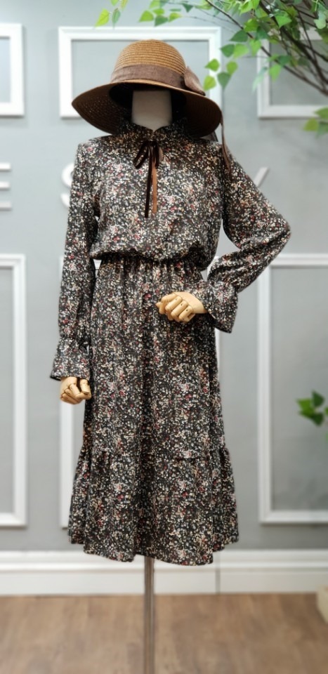 "잔잔한 잔꽃패턴으로 여성스러운 플라워 플레어원피스"