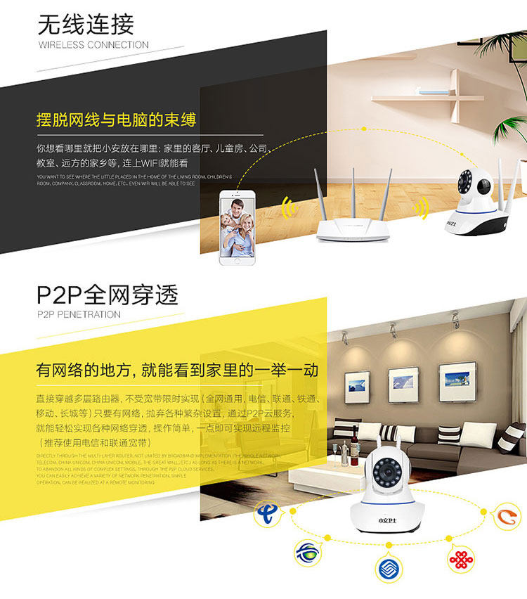 Wireless network surveillance camera night vision wifi ip camera intelligent home camera HD