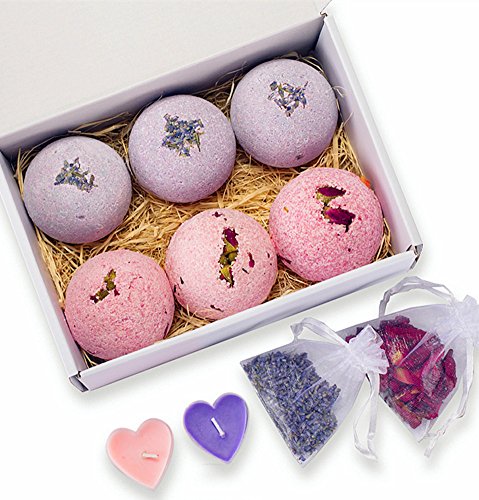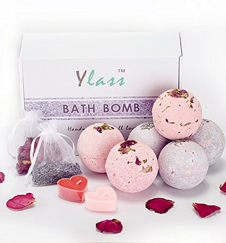 Ylass 6 Large Bath Bombs - 4.5 Oz - Rose, Lavender - Gift Set Ideas - Super Luxury Spa Fans - Best Gift Ideas - Add to Bath Bubble, Basket, Bath Bars - Bath Pearl