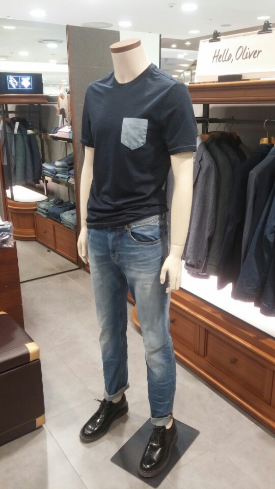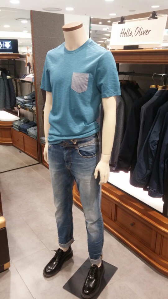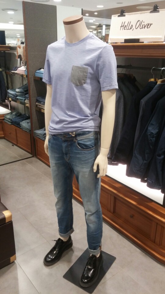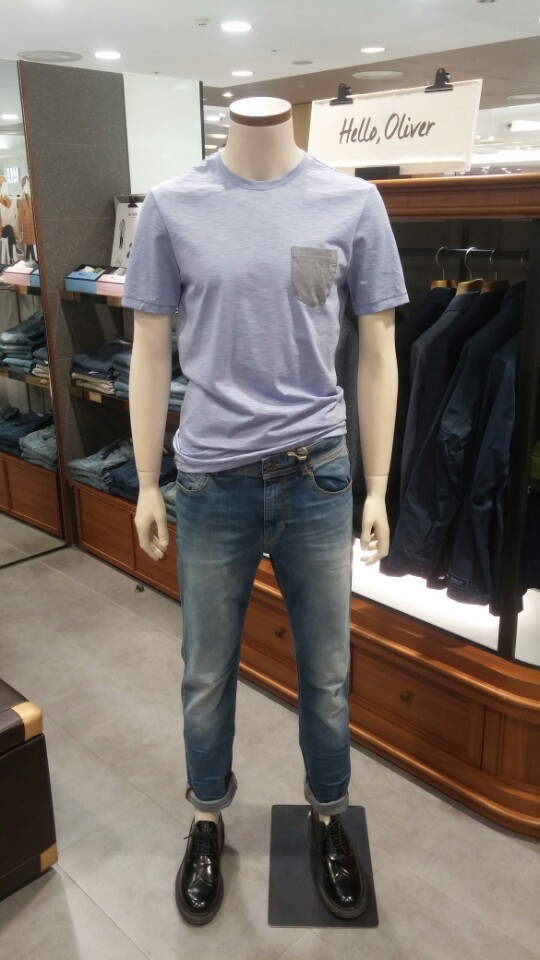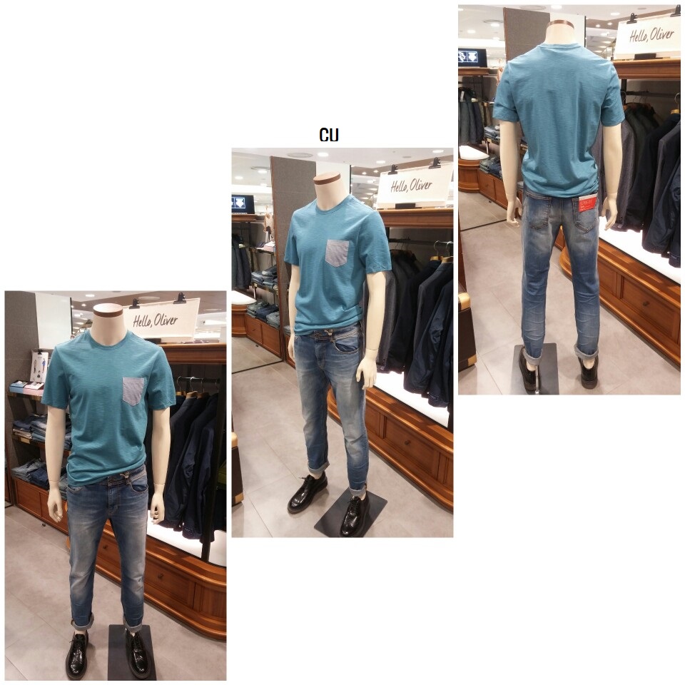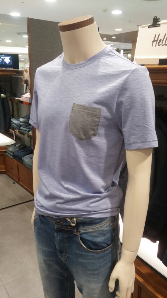 시원한 컬러감과 슬럽조직의 라운드 티셔츠입니다