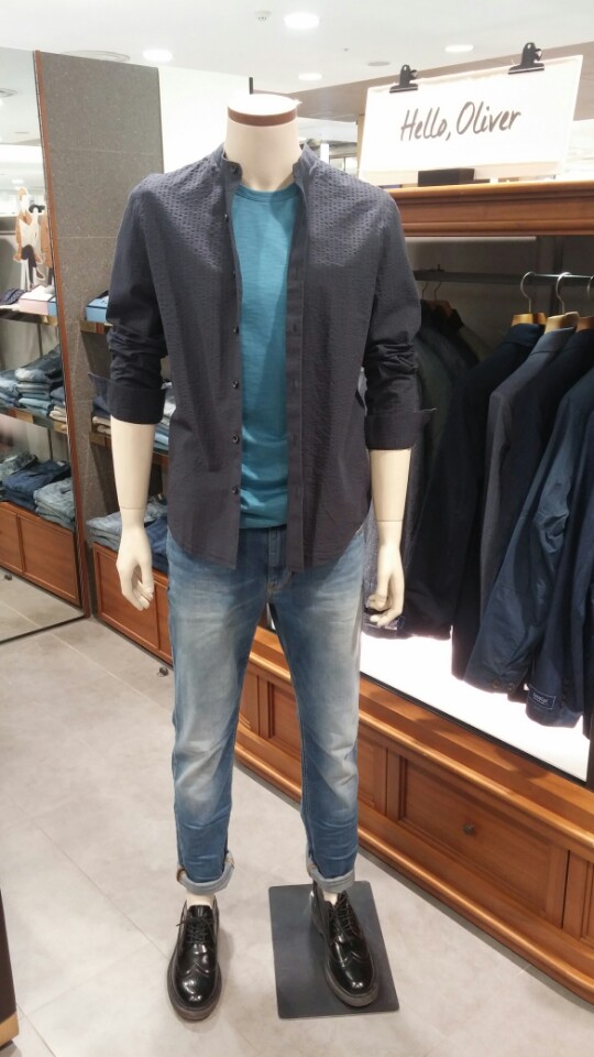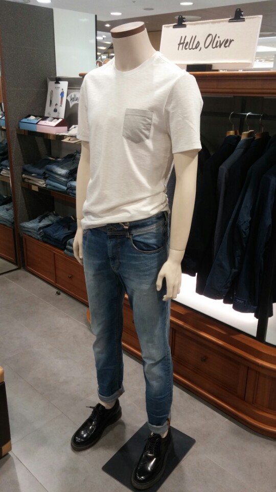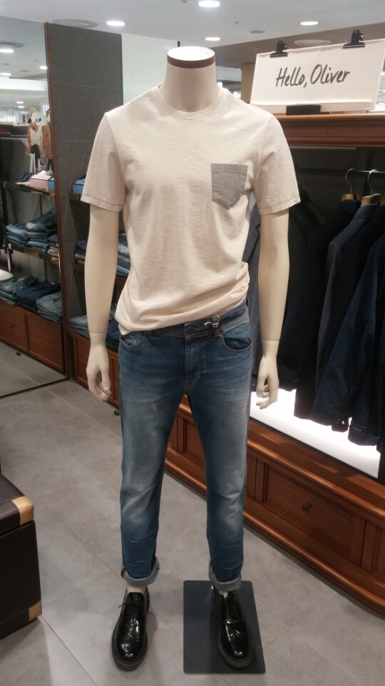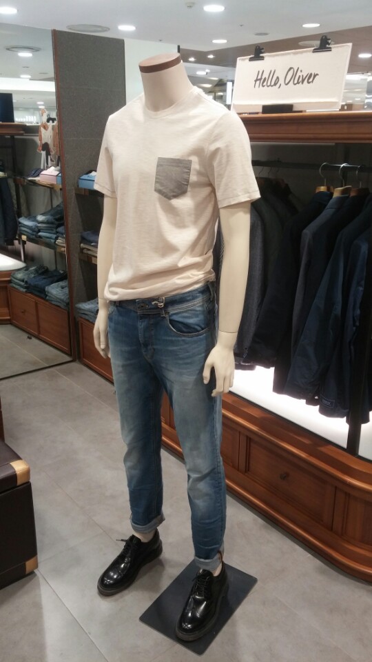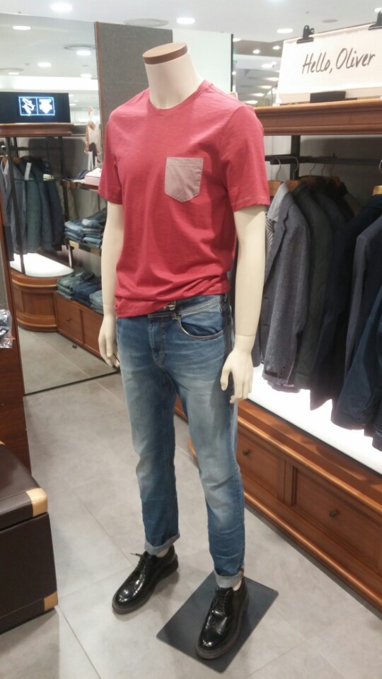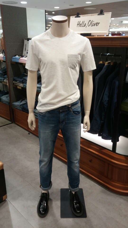 OLZEN  2018년  S/S  슬럽 조직의 라운드티셔츠
