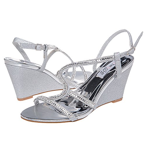 Binding : Apparel Product Description About the sandals December,we also call it month of the party.And are you all ready for the parties? These wedge sandal can make your party outfit glamorous,trendy and comfortable with a strikingly contemporary look. Two distinctive color:champagne goldmetallic silver. The upper entirely set with glitter upper and rhinestone details,this blends of materials and colours truly enrich the luxurious design. Effortlessly slips these on and off.More,the insole is thickened,and outsole was made from sturdy rubber which ensures maximum comfort through prolonged wear.