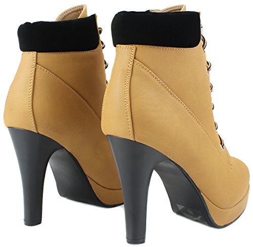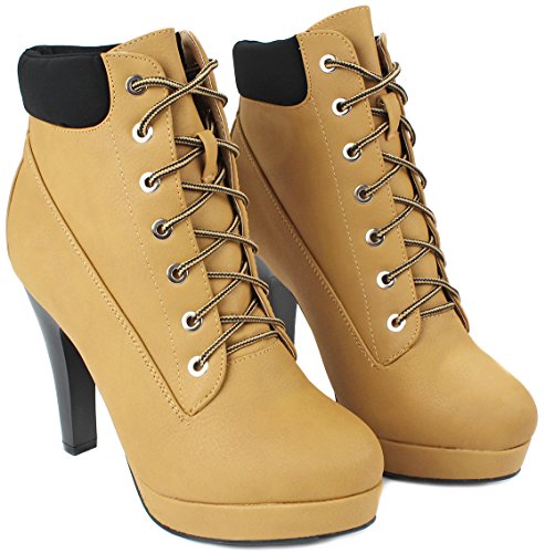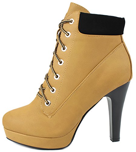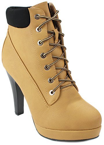 -. Feature : Fitment: True to size / Features: A round toe, lace up front, padded collar, and stitching details. Finished with a chunky heel, a lightly padded insole and a 0.75" platform for comfort wear. / Heel 4.00", Platfororm 0.75", Shaft w/o Heel 4.00", Top Opening Circumference 8.5" (Measurements may vary slightly.) / Please note that the fit and color may vary slightly according to the personal references and monitor settings.