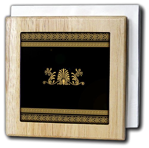 3dRose nh_56709_1 Golden Yellow and Black Ancient Greek Decorative Spirals and Palm Leaves Classic Grecian Key Wall Art, Natural