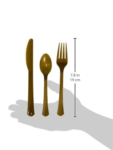 TigerChef 0026-8296@3PK Heavyweight Colored Plastic Silverware Disposable Flatware Cutlery Combo Box, 51 Forks, 51 Spoons, 51 Knives, Gold (Pack of 153)
