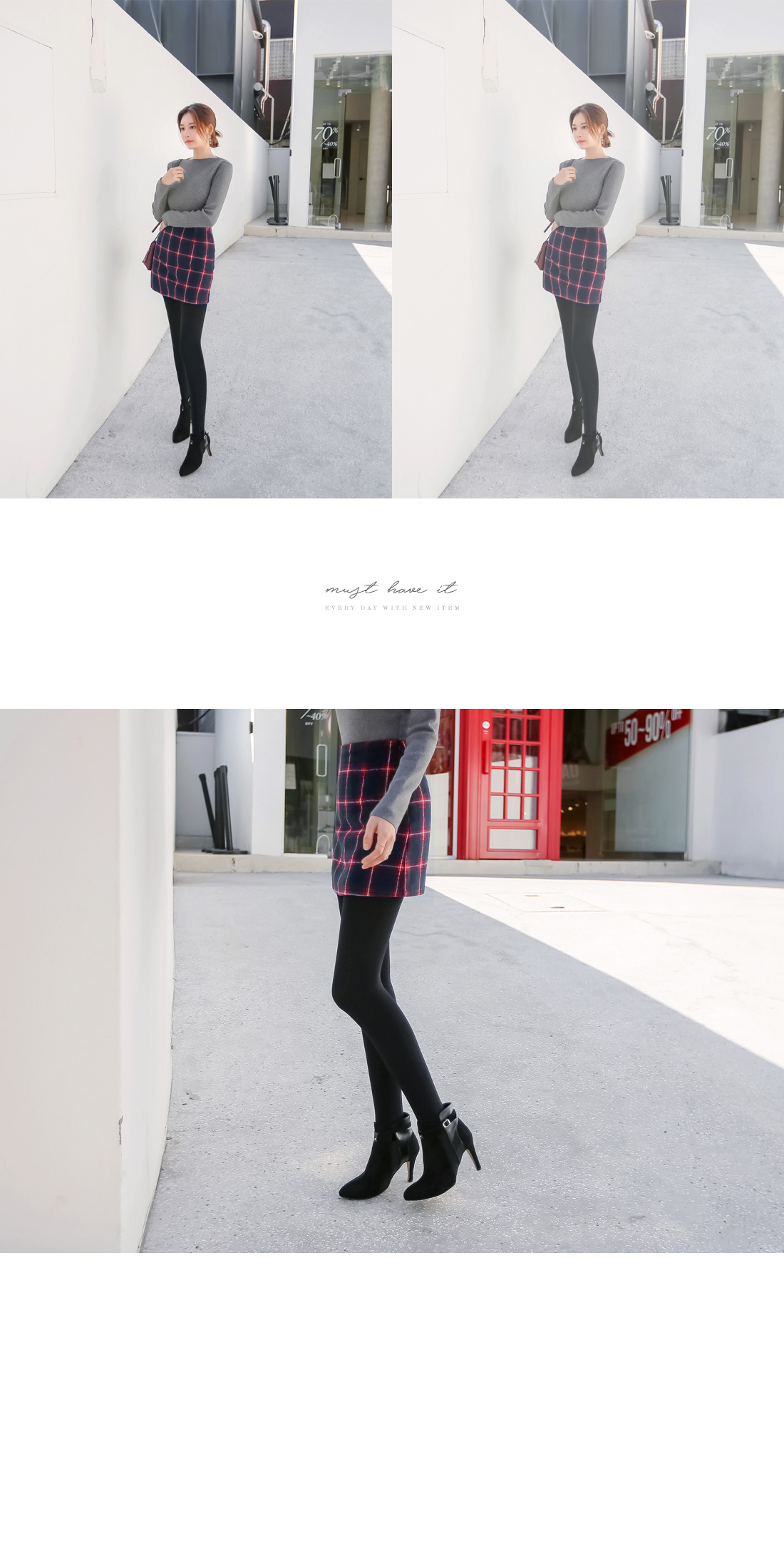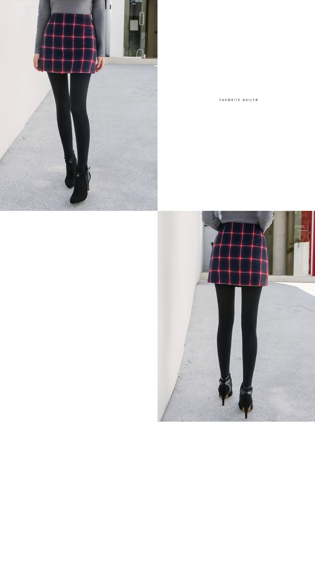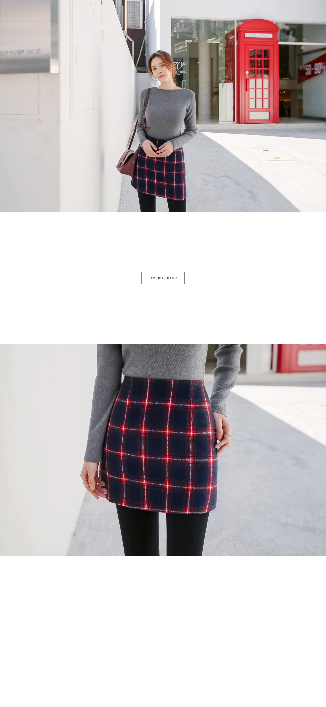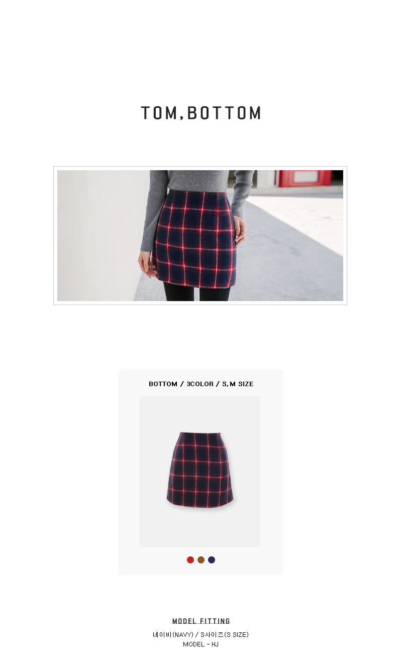 감각적인 체크 패턴의 미니스커트를 소개합니다. 슬림한 H 라인으로 바디 라인을 슬림하게 연출해주며 감각적인 컬러 배색과 체크 패턴으로 입었을떄 더욱 예쁜 스커트 아이템이랍니다. 사이드에 지퍼 디테일로 오픈, 클로징을 도와주며 안감이 함께 구성되어 퀄리티를 높였어요. 블라우스, 니트, 티셔츠 등 다양한 상의들과 매치하여 여러가지 분위기로 연출하기 좋아 활용도가 높으며 미니 기장으로 제작되어 다리 라인을 한층 더 길고 예쁘게 연출해준답니다. 컬러는 네이비, 브라운, 레드 3 가지로 구성되었으며 사이즈는 S, M으로 제작되었으니 참고하여 초이스 해주세요.