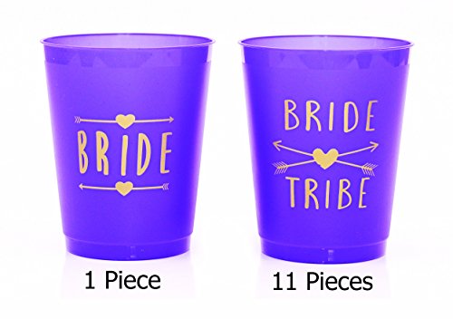 (12 Pack ) Purple Bride and Bride Tribe Cups - for Bachelorette, Bridal, & Hen Parties