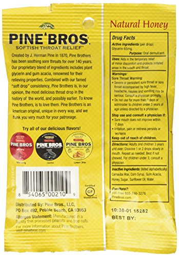 ReleaseDate : 2015-11-19 Studio : Pine Bros. Publisher : Pine Bros. Binding : Health and Beauty Product Description Softish throat drops created by j. Herman pine in 1870, pine brothers has been soothing sore throats for over 140 years. The proprietary blend of natural ingredients combine with the famed "soft drop" consistency to produce, in their opinion, the most delicious throat drop in the history of the world, and possibly earlier. To know pine brothers, is to love them. Pine brothers is an American original, unique in every way. 0