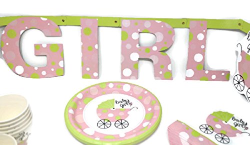 "IT'S A GIRL" BABY SHOWER PARTY PACK - EVERYTHING YOU NEED FOR A CELEBRATION FOR THE NEW MOM - Matching Invitations, Luncheon Plates with Napkins, Beverage Cups and "Baby Shower" Banner