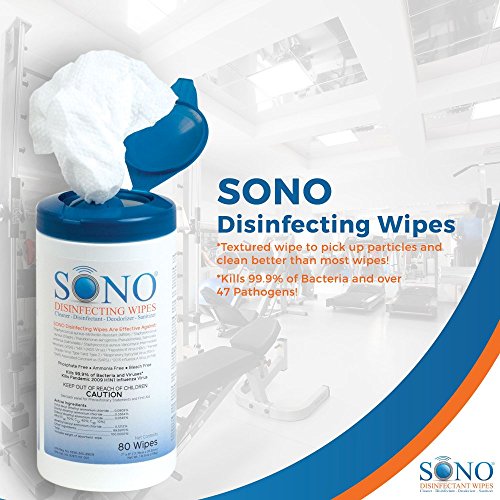 -. Binding : Kitchen -. Brand : SONO -. EAN : 0854140004035 -. Feature : Kills 99.9% of bacteria and over 47 pathogens / Top quality fabric wipes per canister / 6 canisters per case / Textured wipe to pick up particles and clean better than most wipes -. Label : SONO -. Manufacturer : SONO -. Model : SONO4032 -. MPN : SONO4032 -. PackageQuantity : 6 -. PartNumber : SONO4032 -. ProductGroup : Home -. ProductTypeName : HOME -. Publisher : SONO -. Studio : SONO -. Title : SONO Disinfecting Wipes Canisters Kills 99.9% of Germs, Medical Grade for Home Use, 80 Count -. UPC : 854140004035