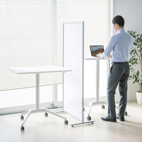 ●座り作業、立ち作業が行えるパーソナルデスクです。