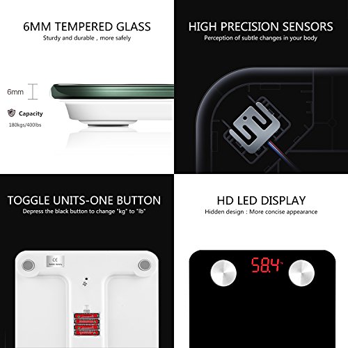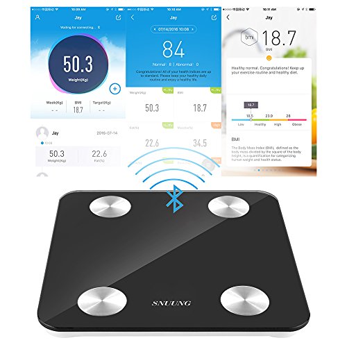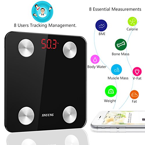 SNUUNG Bluetooth Body Fat Scale with IOS & Android APP, High Quality Smart Digital Bathroom Weight Scale with Large LED Display, 400 lbs Black