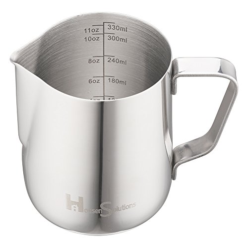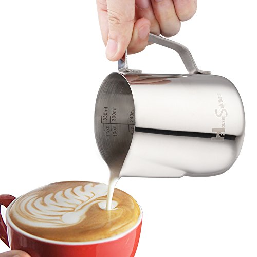 Milk Frothing Pitcher - Housen Solutions Stainless Steel 304 with Measurement 12 Oz (350ml), Perfect for Milk, Cream, Water, Juices, Smoothies