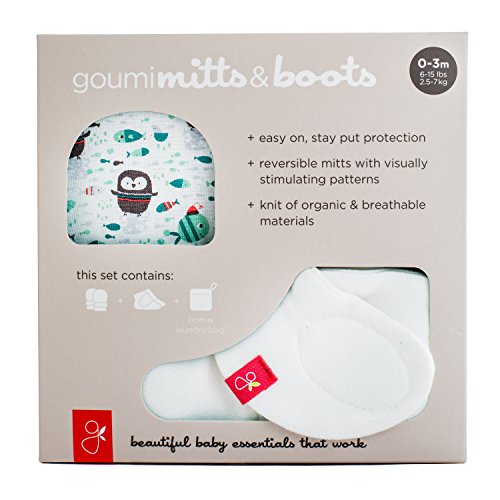 -. Feature : LUXURIOUSLY SOFT and ORGANIC - Our machine washable boots and mitts are made from 70% bamboo-derived viscose / 30% organic cotton and are naturally antimicrobial providing protection from germs / STAY ON NO MATTER WHAT - Our mitts and booties both have our signature two-part closure system that combines with a strong Velcro strap with ample elastic that is slip proof / SCRATCH and GERM-FREE - Our mittens provide the worry-free protection your infant needs from scratches, germs, rubbing their face, and sucking on hand & fingers; Especially good for children with eczema, skin allergies, dry, flaky skin, cradle cap or colicky babies / PROMOTES BRAIN and EYE DEVELOPMENT - Each of our high contrast, bold patterns are reversible and specifically designed to promote infant brain and eye development allowing your child to explore, learn and grow without scratches and protection from germs / goumikids GIVES BACK - goumikids is founded and led by two moms with a mission to create sustainable, innovative products that improve the lives of parents and babies