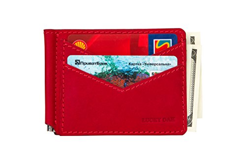 -. Title : Lucky Oak Slim Front Pocket Genuine Leather Money Clip, Minimalist RFID Card Holder Wallet