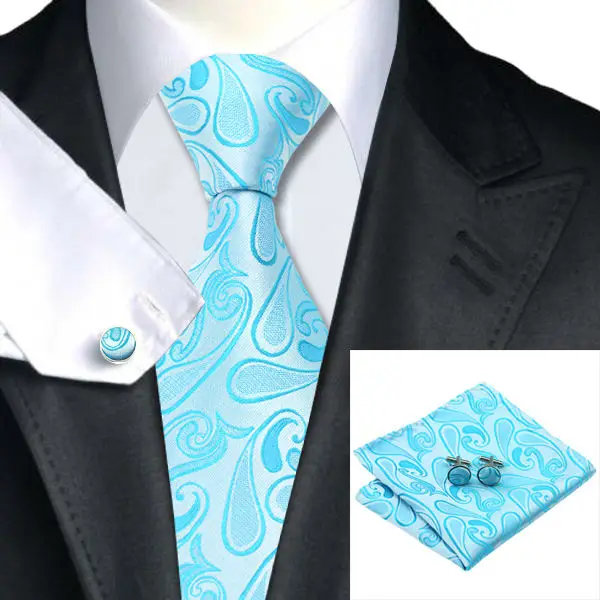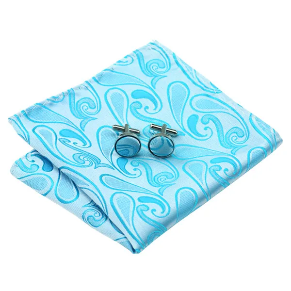 LS-1088 특별 제공 남성 브랜드 넥타이 블루 참신 100% 실크 타이 + 손수건 + 커프스 세트 웨딩 파티 비즈니스 무료 우표