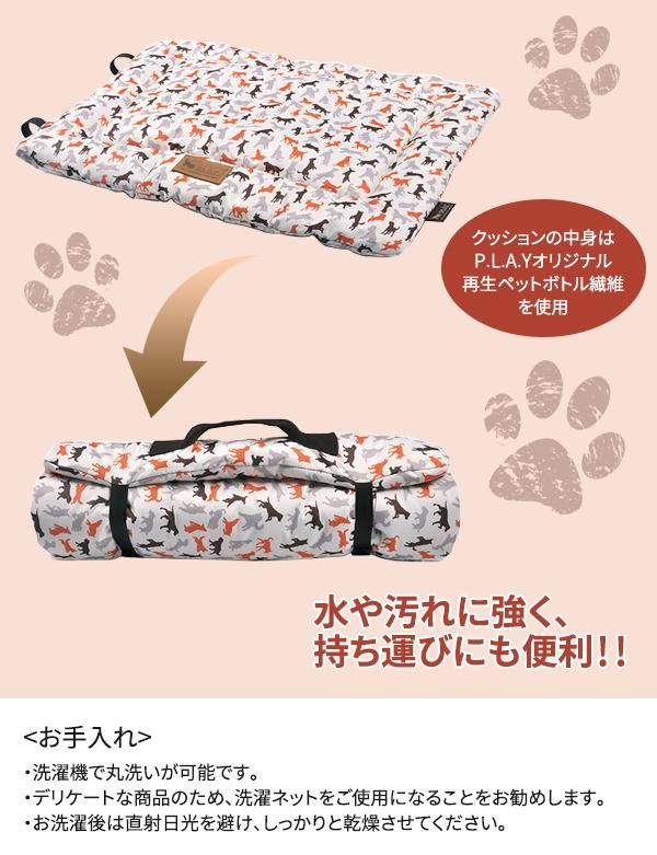 くるりと丸めてコンパクトに持ち運べるアウトドアチルパッドは、P.L.A.Yのベッド作りに活かされてきた技術と品質をそのまま受け継いだハイクオリティーなペット用マットです。外側には水や汚れに強い防水タイプのカバー、内側にはベッドと同じペットボトル再生繊維を使用しており、独特のフカフカ感でワンちゃんネコちゃんの体を受け止めます。また、お洗濯が可能なのでいつでも清潔に気持ちよくお使いいただけます。 |