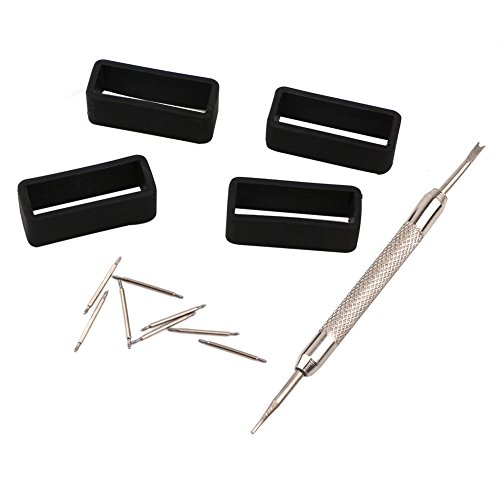 -. Feature : Fits size 24mm,24mm rubber loop / Black Color / Durable Rubber / 4PC Black Rubber Loops / 1 X Sliver watch tool