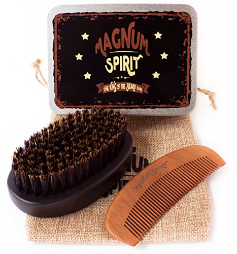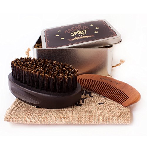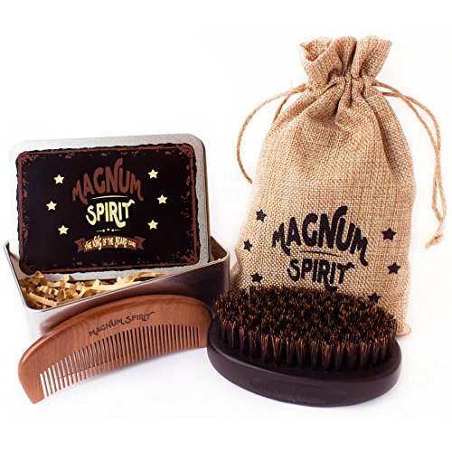 Beard Brush and Comb Set for Men w/ Travel Bag & Metal Gift Box, Firm 100% Boar Bristle Brush & Handmade Wooden Beard Comb - Kit for Beard,...