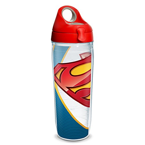 Tervis Warner Brothers Superman Wrap Water Bottle with Red Wb Lid, 24oz, Clear
