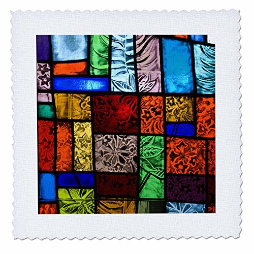 3dRose qs_83520_4 Stained Glass at a Church with Nature Themes NA01 RKL0021 Raymond Klass Quilt Square, 12 by 12-Inch