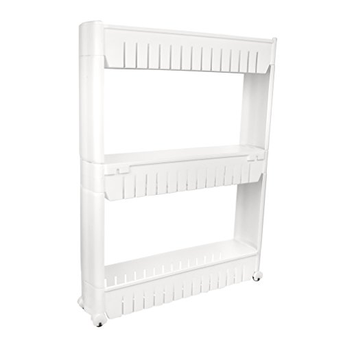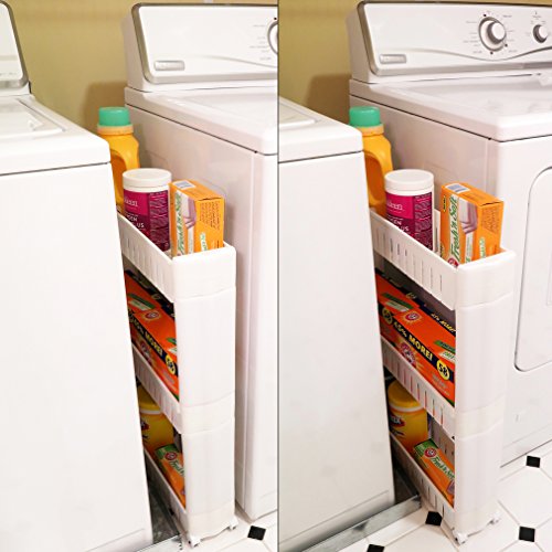 Evelots Slim Slide Out Storage Tower Unit For Laundry, Bathroom & Kitchen, White