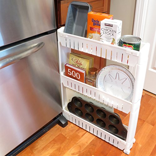This slide out storage tower unit is the perfect solution for utilizing those narrow areas for storage in your home or office.