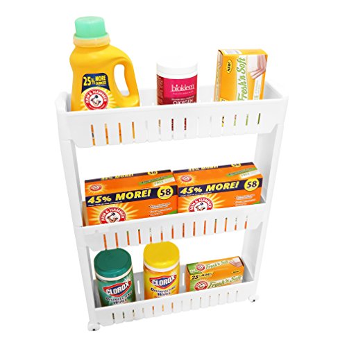Use in your laundry room, bathroom, kitchen, garage, room, dorm, etc. Made out of sturdy light weight white plastic. Each shelf has vents on the bottom and sides for air flow. Easy to clean.