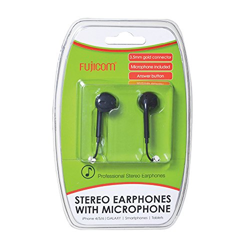 FUJICOM Stereo Earphones with Microphone ,Running, Exercise,Hiking Sports Suitable for IOS & Android Devices Gold Connector 3.5mm 1.2m Length
