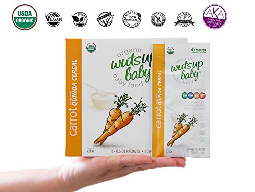 -. Title : 8x Organic Carrot Quinoa Infant & Baby Cereal Travel Packs w/ Naturally Occurring Omega 3, 6, 9 Protein, Iron, Magnesium, B2. Easiest First Foods to Digest. By WutsupBaby – 4oz (8 pack x 0.5oz)