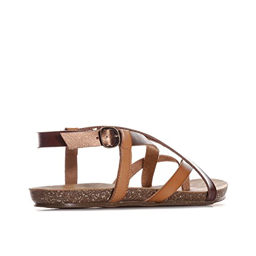 Studio : Blowfish Publisher : Blowfish Binding : Shoes Product Description Womens Blowfish Granola Sandals in desert sand / whiskey bronze.- Faux leather sandal with toe post.- Two-tone crossover strap design.- Buckled ankle strap.- Contoured faux leather footbed.- Synthetic upper, lining and sole.- Ref: GRANOLA 0