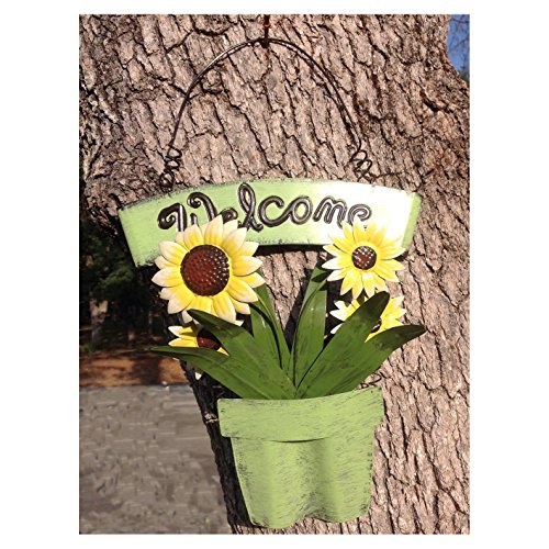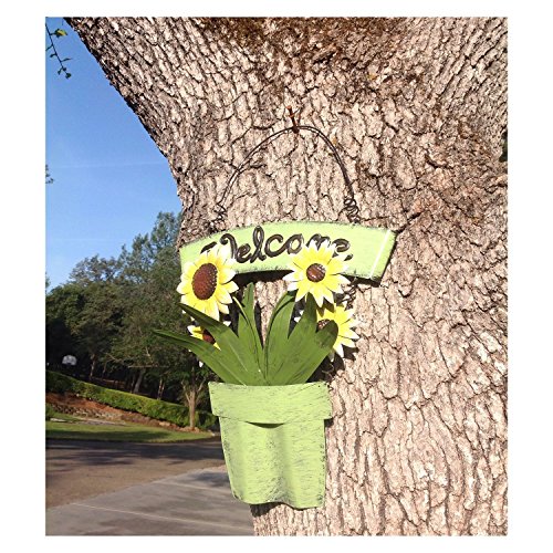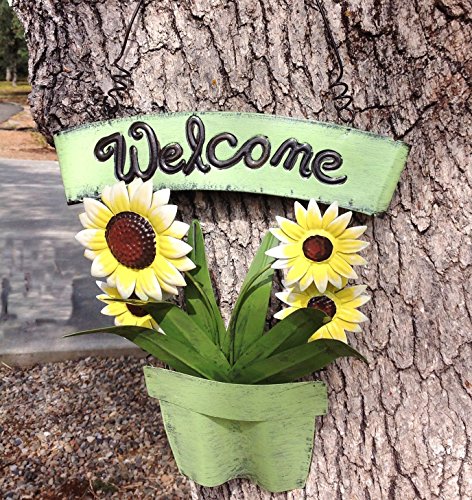 Holiday Big Sale! Decorative Metal Shabby Chic Welcome Sign with Sunflowers in Green Planter